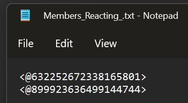 Mentionable -> a text file containing all the people who reacted, in a format ready to paste into a discord message to easily @ and mention the users who reacted